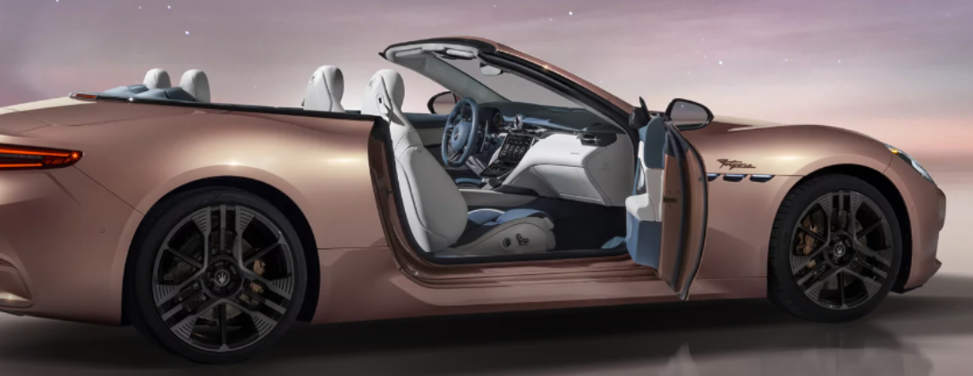 Dual-zone climate control, Sonus Faber 14-speaker audio (optional 19-speaker), wireless Apple CarPlay/Android Auto, Maserati Intelligent Assistant, head-up display, fabric roof (14.1-second open/close), four drive modes (Comfort, GT, Sport, Corsa) |