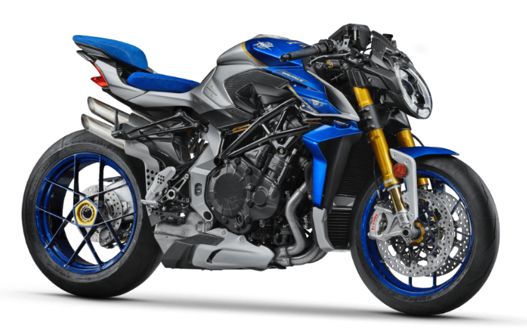 8-level traction control, FLC wheelie control, launch control, torque control (4 maps), 4 riding modes (Sport/Race/Rain/Custom), cruise control, keyless start, LED headlights with cornering function, MV Ride App connectivity, counter-rotating throttle, navigation, carbon fiber components (headlamp cowl, tank panels, exhaust shields), Arrow titanium exhaust (Racing Kit), certificate of authenticity, custom motorcycle cover |