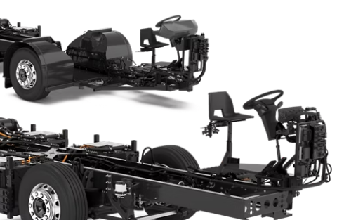 Chassis prepared for roof-mounted HVAC units from various suppliers, including heat pump functionality |
